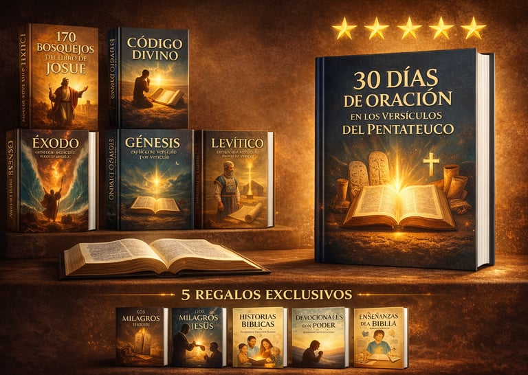 Al adquirir 30 DÍAS DE ORACIÓN EN LOS VERSÍCULOS DEL PENTATEUCO hoy, recibirás totalmente GRATIS estos 5 regalos exclusivos que complementarán tu estudio y crecimiento espiritual: